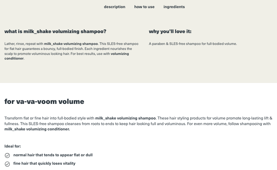 SEO Brand Copywriting - Milk.Shake Hair USA